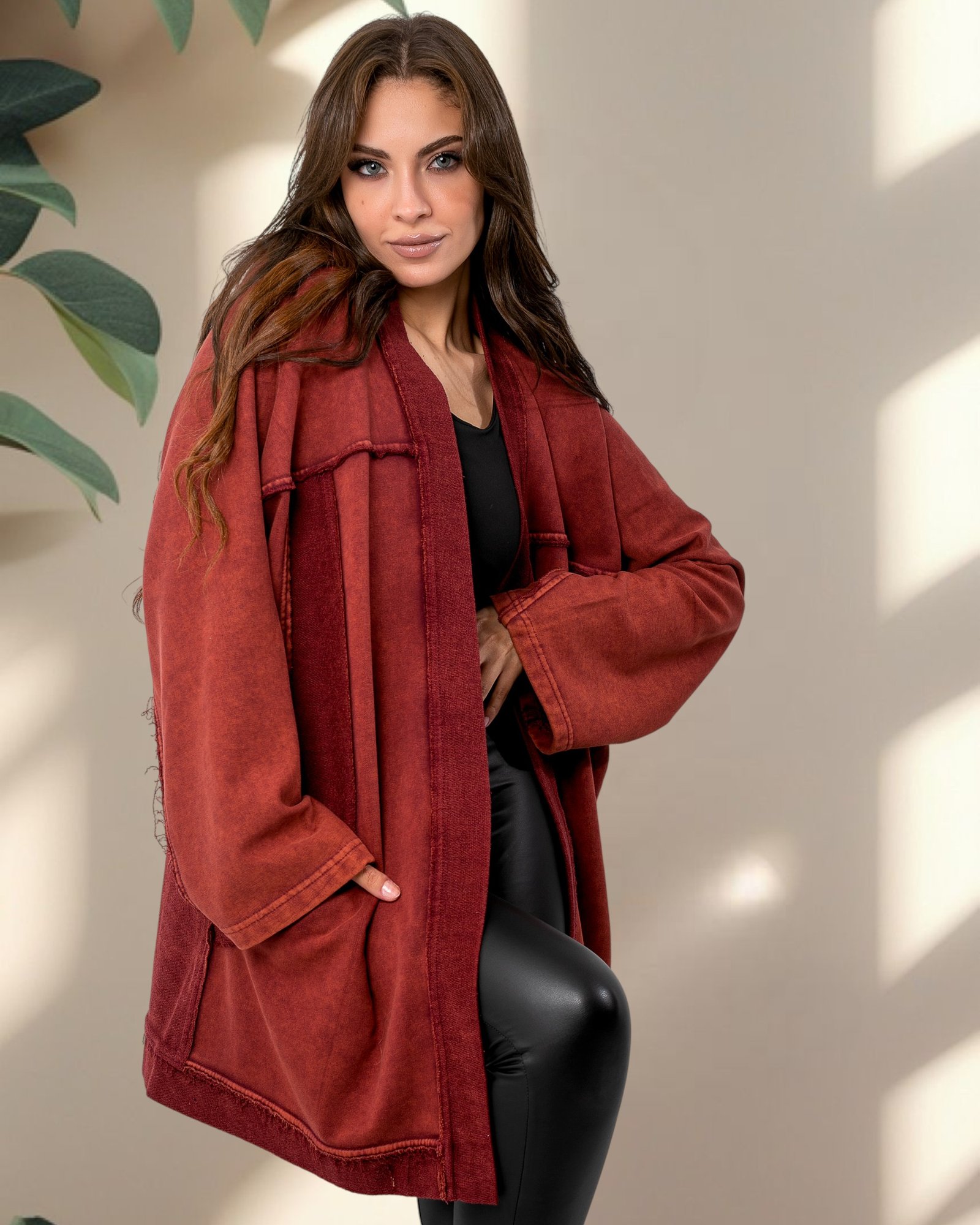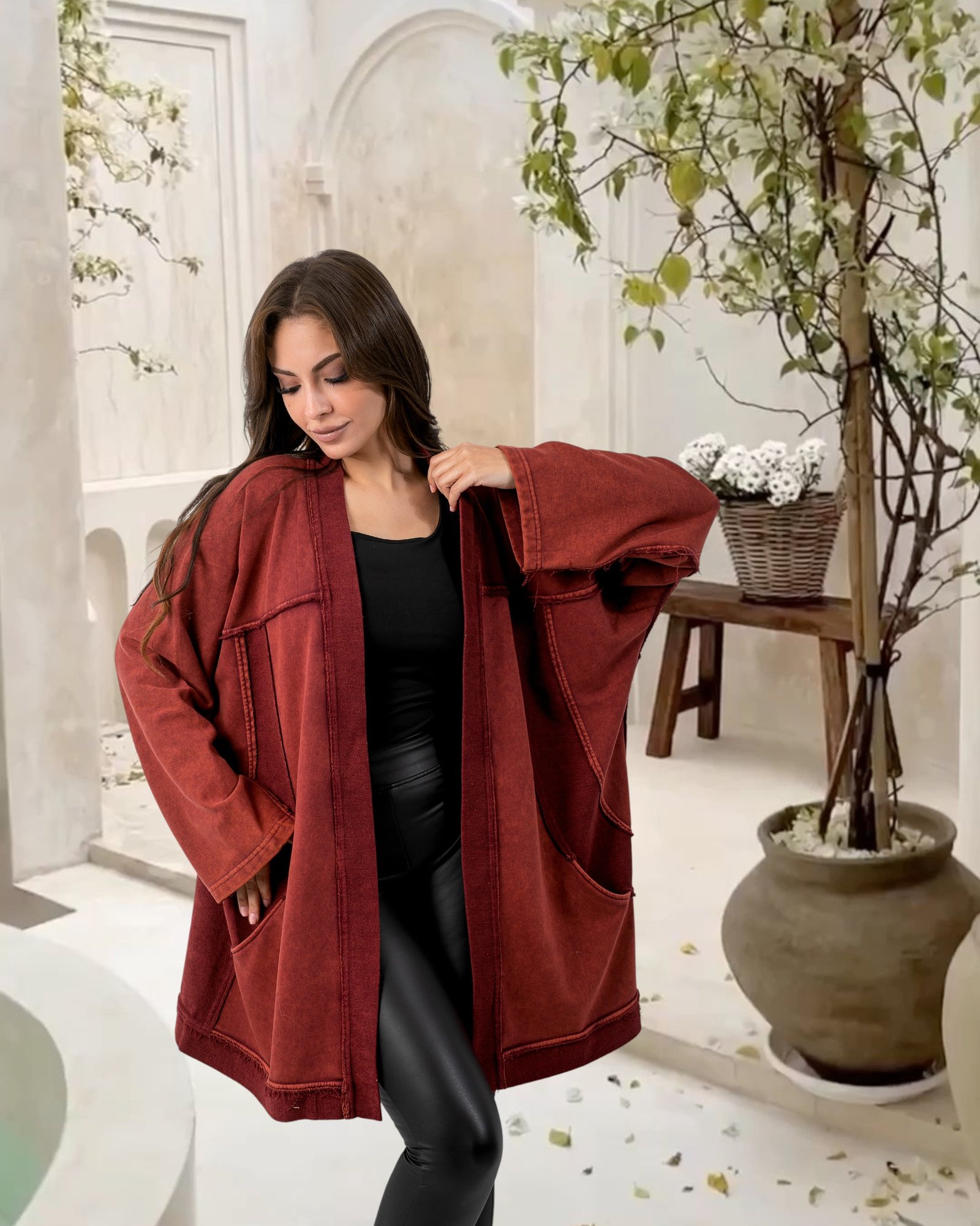 Jovly Oversize Cardigan Washed Sweatshirt is made from Soft ; Breathable Cotton Fabric that feels Like a Warm Hug ; Perfect for those Chilly days When you need an extra Layer of Warmth and Style.