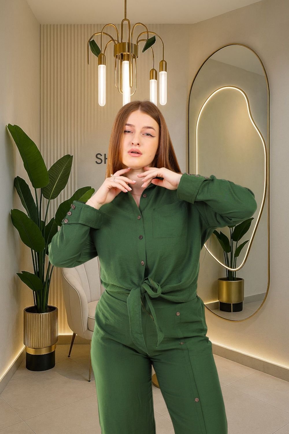 🎋 Shirt with tie-front detail and structured cuffs with button accents